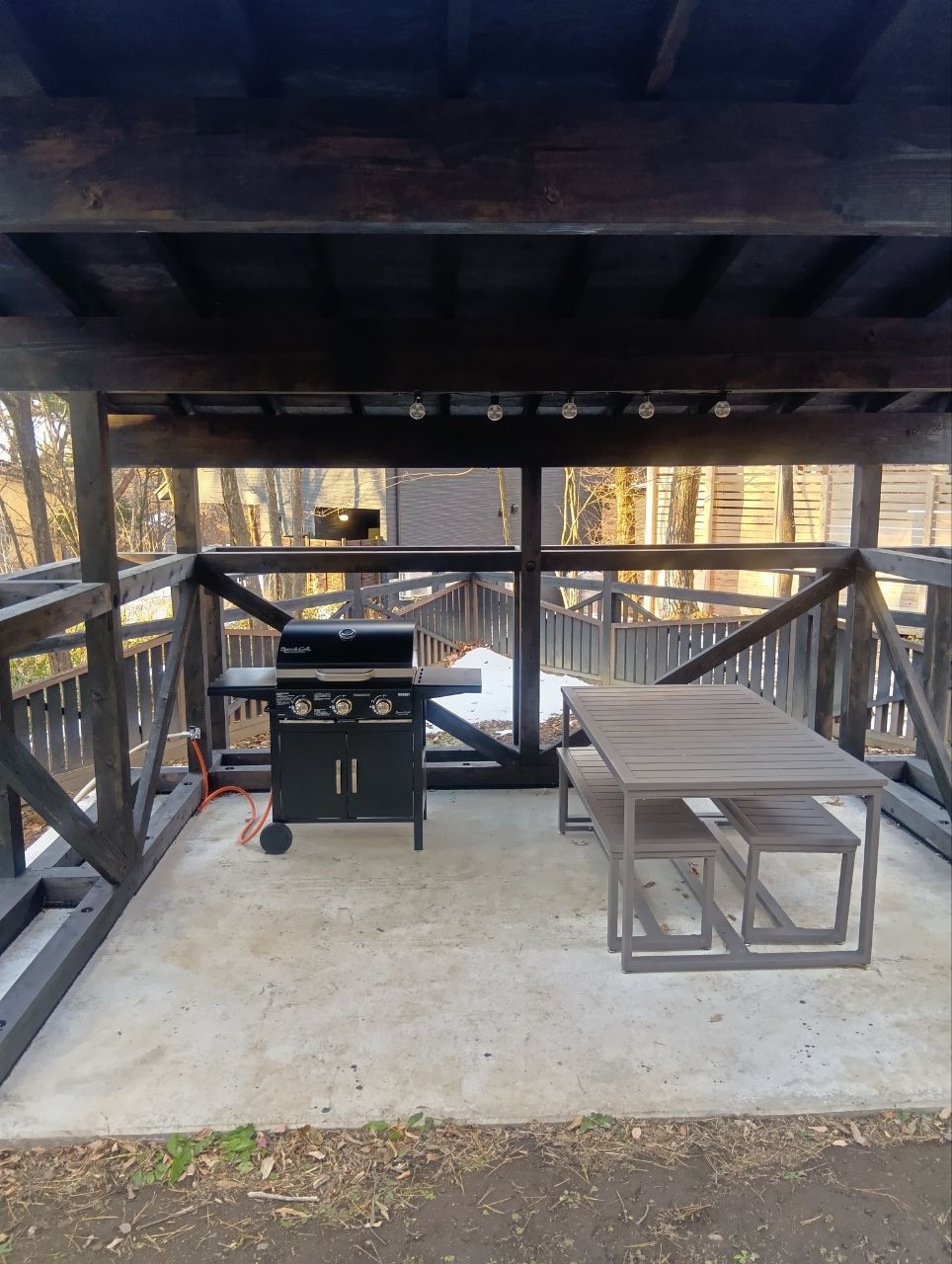 夕ご飯は庭でバーベキュー!セットでついてるお肉の質がとても良く美味しかったです♪